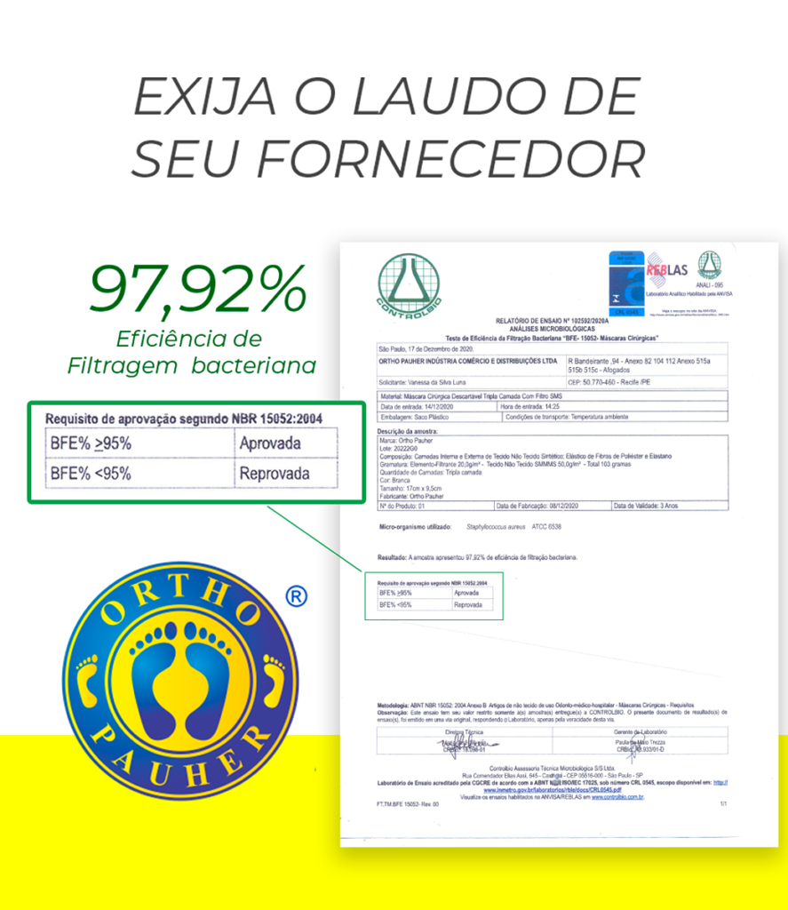 Solicite de seu fornecedor o laudo de eficiência de filtragem bacteriana da máscara de sua fabricação. É um direito seu exigi-lo!